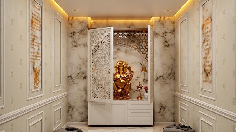 Aluminum Pooja unit refers to a space or furniture dedicated to performing Hindu religious rituals, commonly known as "pooja" or "puja," primarily made of aluminum or featuring aluminum elements in its design. Here's what you might find in such units: